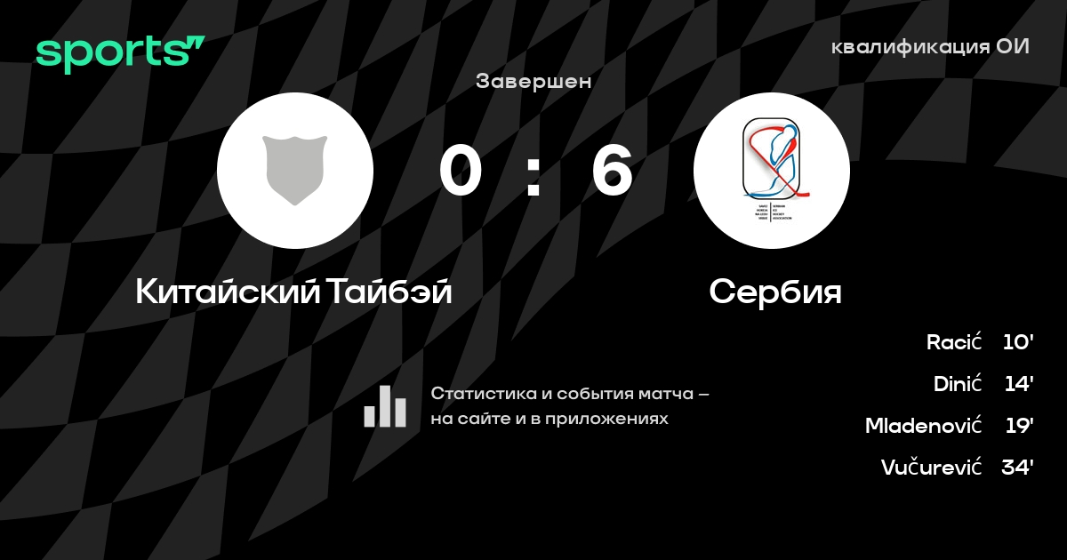 В прошедшем матче в рамках турнира квалификация ОИ состоялась встреча команд Китайский Тайбэй - Сербия в городе Belgrade на стадионе Pionir Ice Hall
