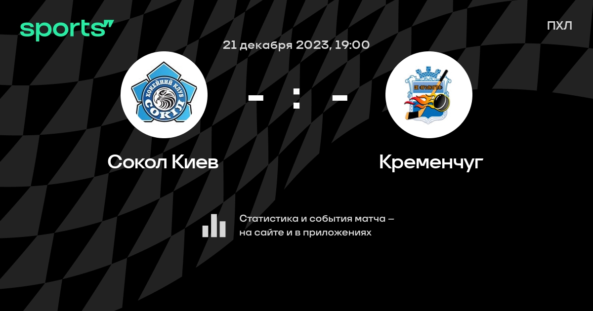 В предстоящем матче в рамках турнира ПХЛ пройдет встреча команд Сокол Киев - Кременчуг в городе  на стадионе Palats Sportu.