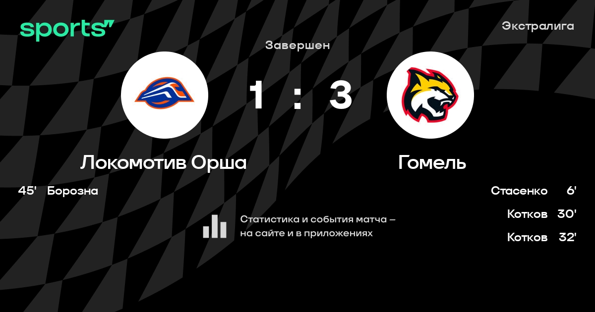 В прошедшем матче в рамках турнира Экстралига состоялась встреча команд Локомотив Орша - Гомель в городе Орша (Беларусь) на стадионе Ледовая арена Орша (вместимость - 3500)
