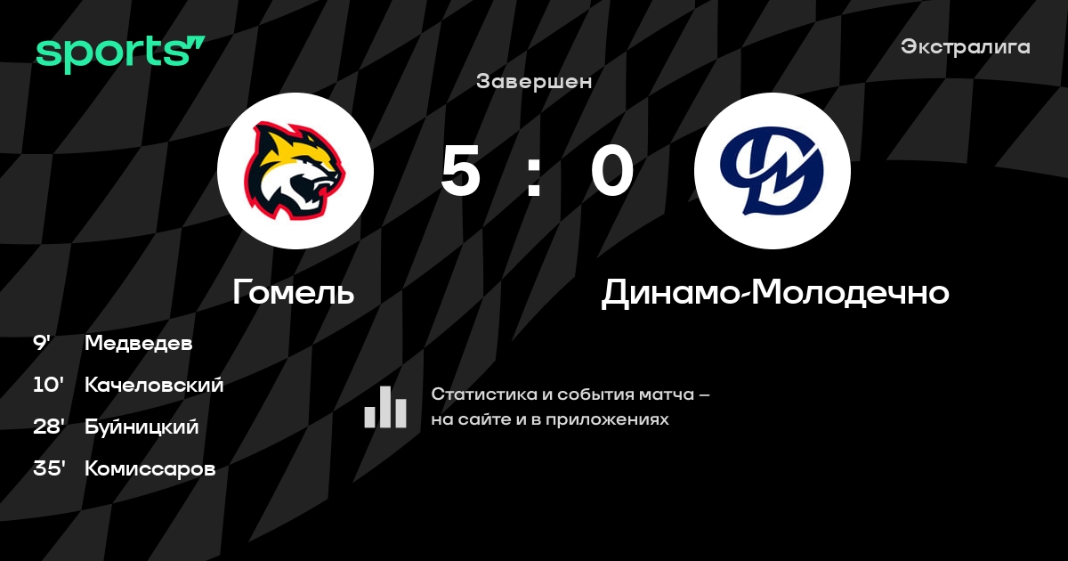 В прошедшем матче в рамках турнира Экстралига состоялась встреча команд Гомель - Динамо-Молодечно в городе Гомель (Беларусь) на стадионе Ледовый дворец Гомель (вместимость - 2700)