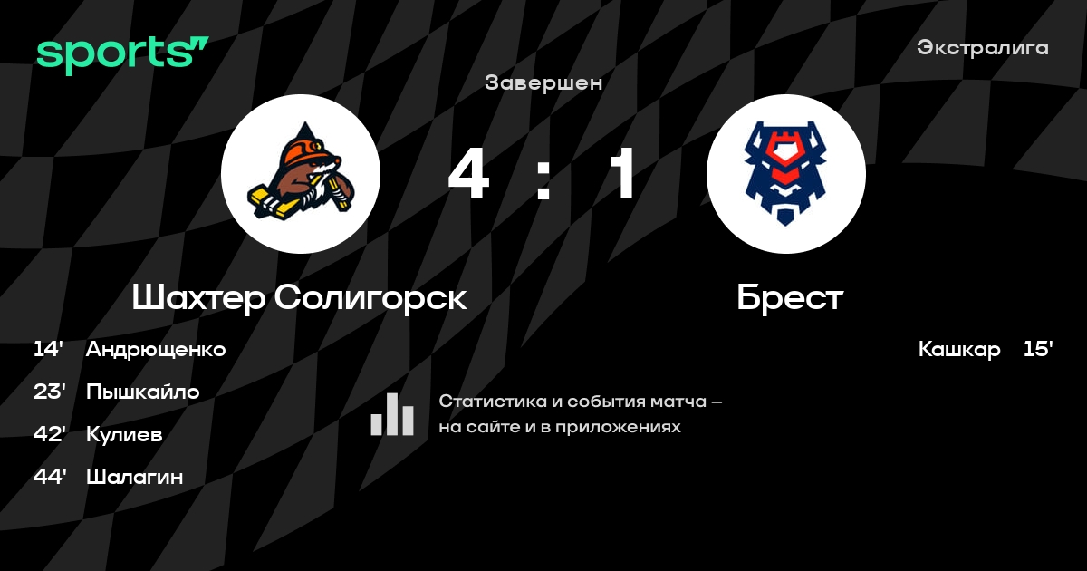 В прошедшем матче в рамках турнира Экстралига состоялась встреча команд Шахтер Солигорск - Брест в городе Солигорск (Беларусь) на стадионе Ледовый дворец спорта Солигорск (вместимость - 1800)
