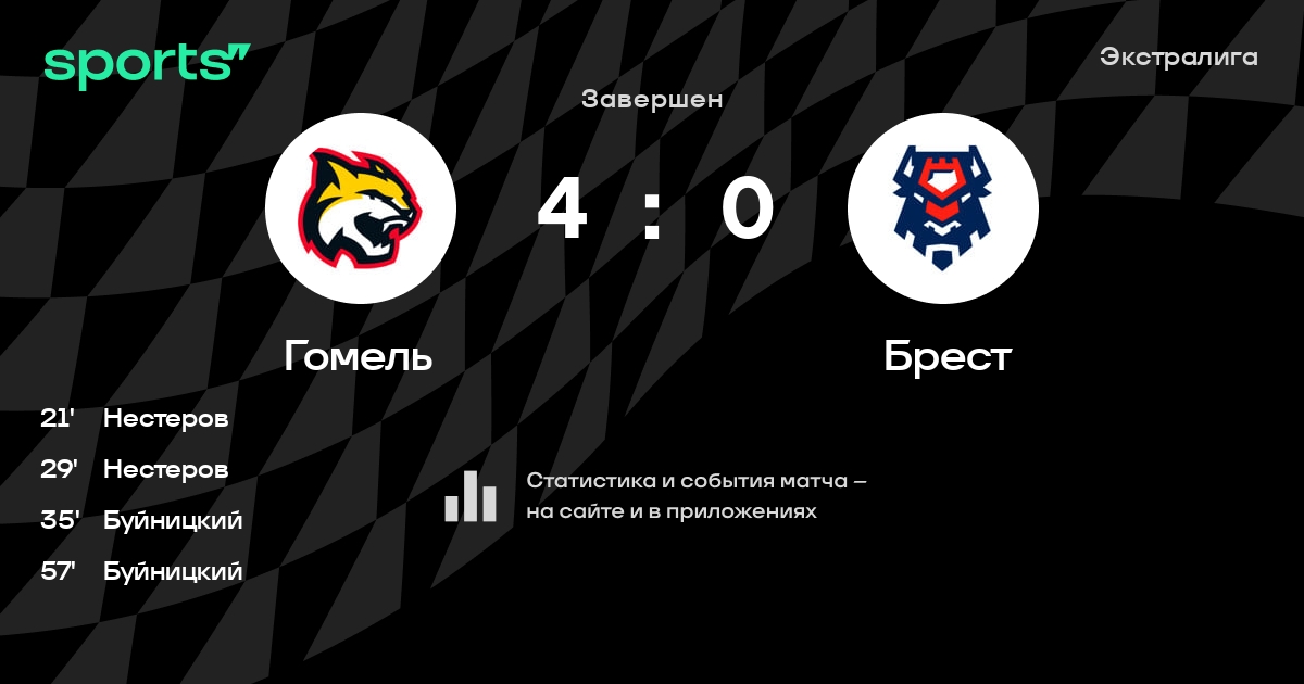 В прошедшем матче в рамках турнира Экстралига состоялась встреча команд Гомель - Брест в городе Гомель (Беларусь) на стадионе Ледовый дворец Гомель (вместимость - 2700)