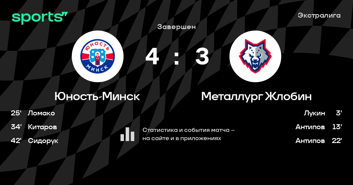 В прошедшем матче в рамках турнира Экстралига состоялась встреча команд Юность-Минск - Металлург Жлобин в городе Минск (Беларусь) на стадионе Чижовка-Арена (вместимость - 9487)