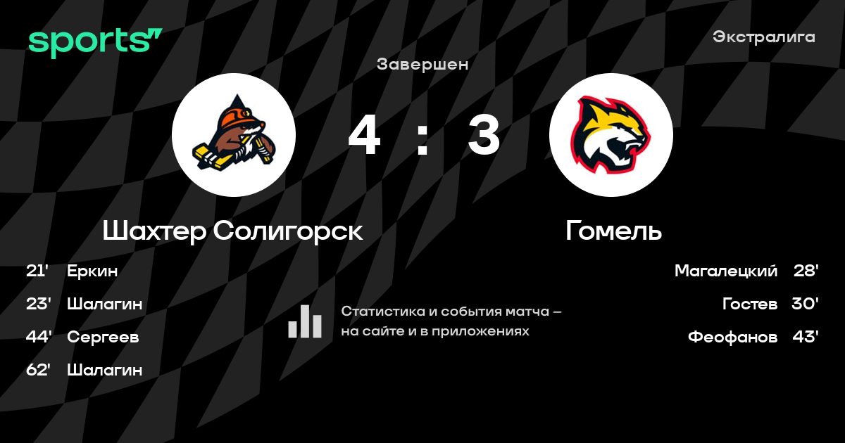 В прошедшем матче в рамках турнира Экстралига состоялась встреча команд Шахтер Солигорск - Гомель в городе Солигорск (Беларусь) на стадионе Ледовый дворец спорта Солигорск (вместимость - 1800)