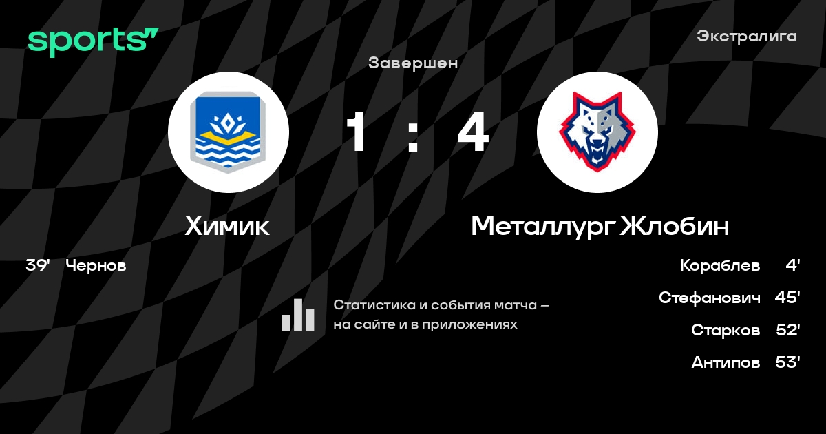 В прошедшем матче в рамках турнира Экстралига состоялась встреча команд Химик - Металлург Жлобин в городе Новополоцк (Беларусь) на стадионе Дворец культуры и спорта (вместимость - 1200)