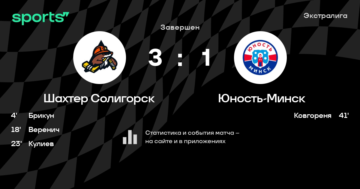 В прошедшем матче в рамках турнира Экстралига состоялась встреча команд Шахтер Солигорск - Юность-Минск в городе Солигорск (Беларусь) на стадионе Ледовый дворец спорта Солигорск (вместимость - 1800)