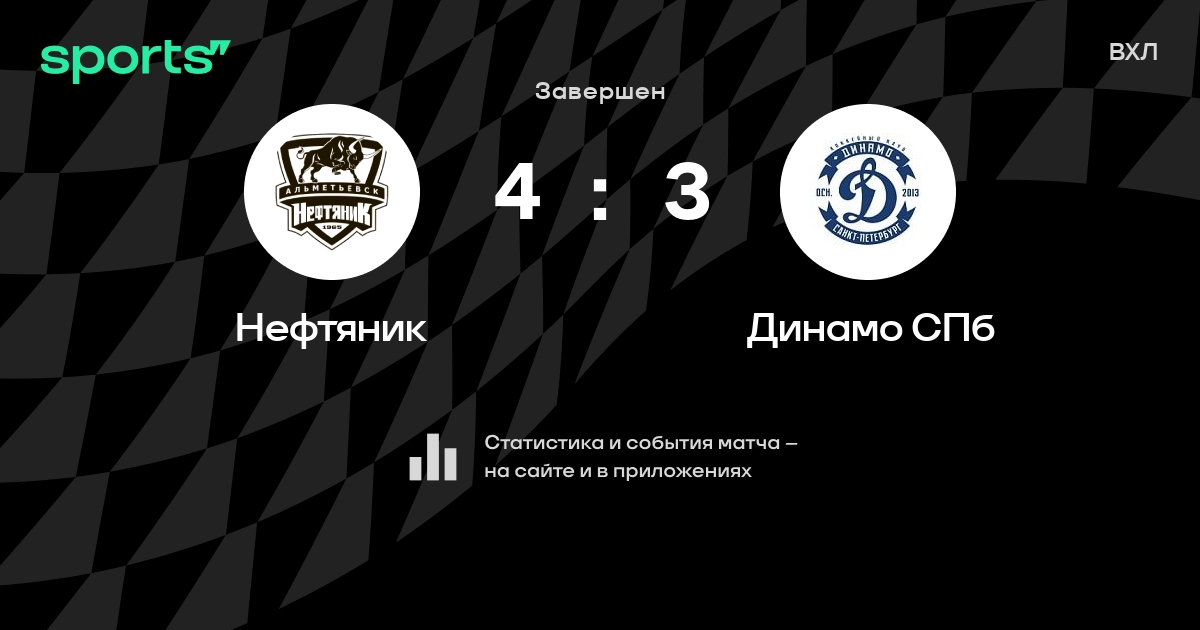 В прошедшем матче в рамках турнира ВХЛ состоялась встреча команд Нефтяник - Динамо СПб в городе на стадионе Dvorets Sporta Yubileynyy