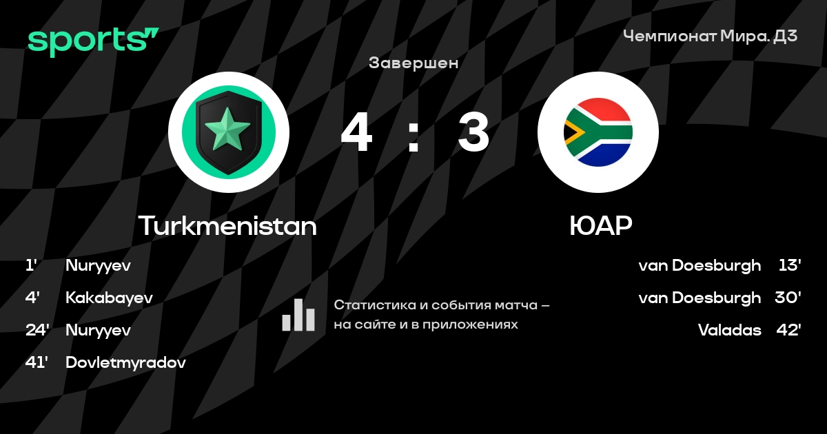 Как прошел матч, смотрите в текстовой трансляции Turkmenistan - ЮАР на Sports.ru