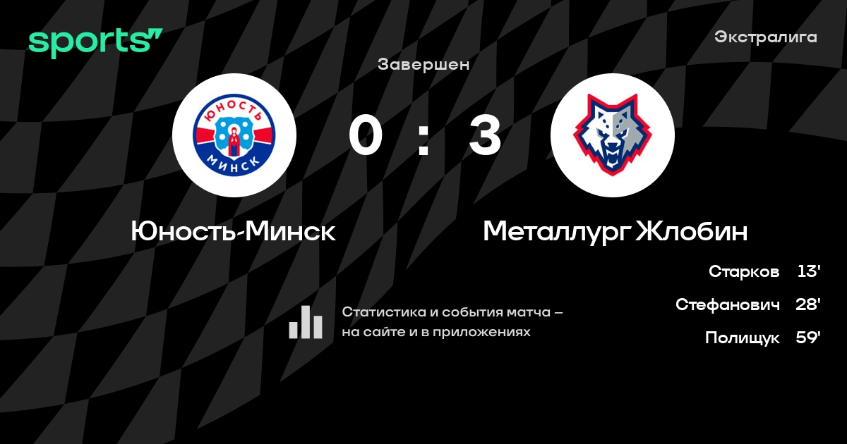 В прошедшем матче в рамках турнира Экстралига состоялась встреча команд Юность-Минск - Металлург Жлобин в городе Минск (Беларусь) на стадионе Чижовка-Арена (вместимость - 9487)