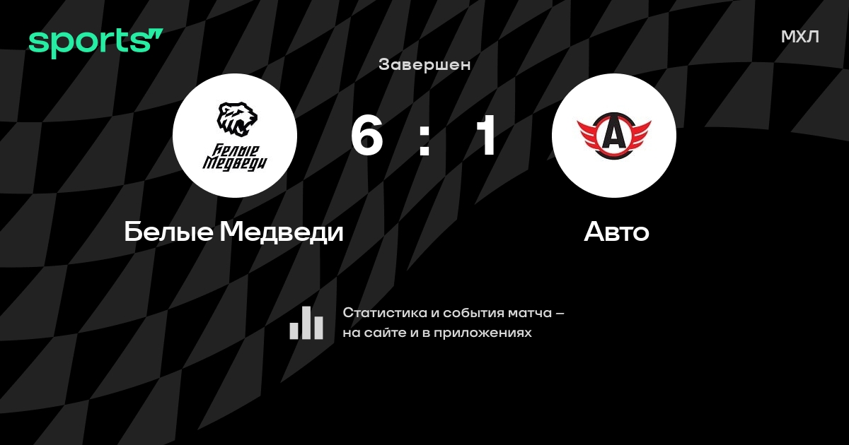 В прошедшем матче в рамках турнира МХЛ состоялась встреча команд Белые Медведи - Авто в городе Челябинск (Россия) на стадионе Арена Трактор (вместимость - 7500)