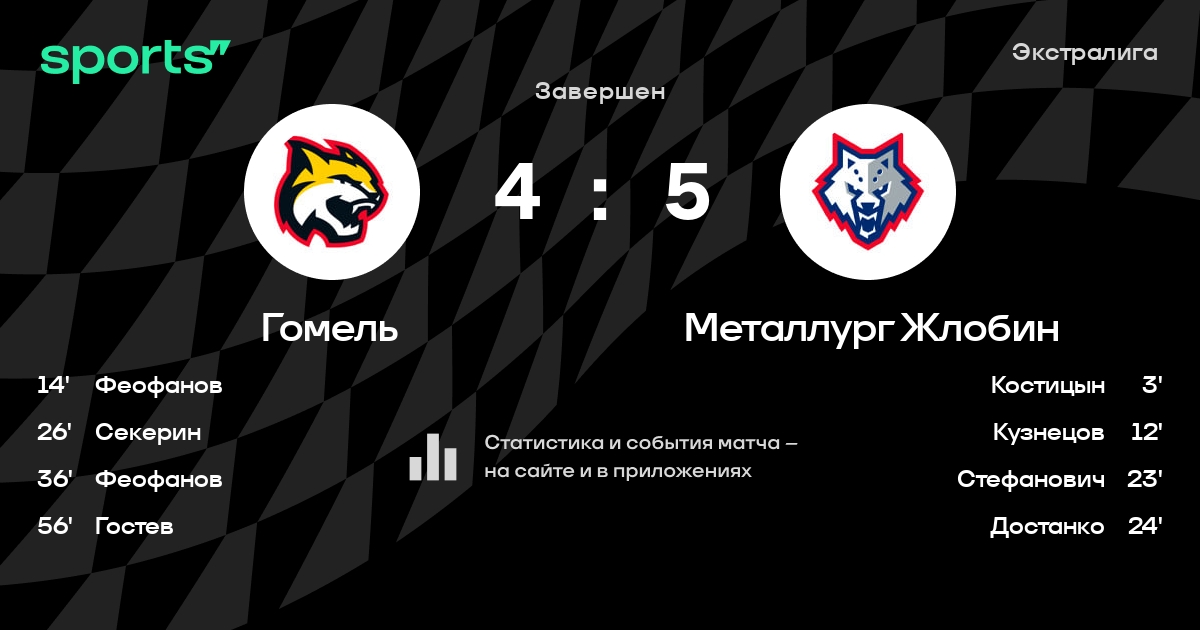В прошедшем матче в рамках турнира Экстралига состоялась встреча команд Гомель - Металлург Жлобин в городе Гомель (Беларусь) на стадионе Ледовый дворец Гомель (вместимость - 2700)