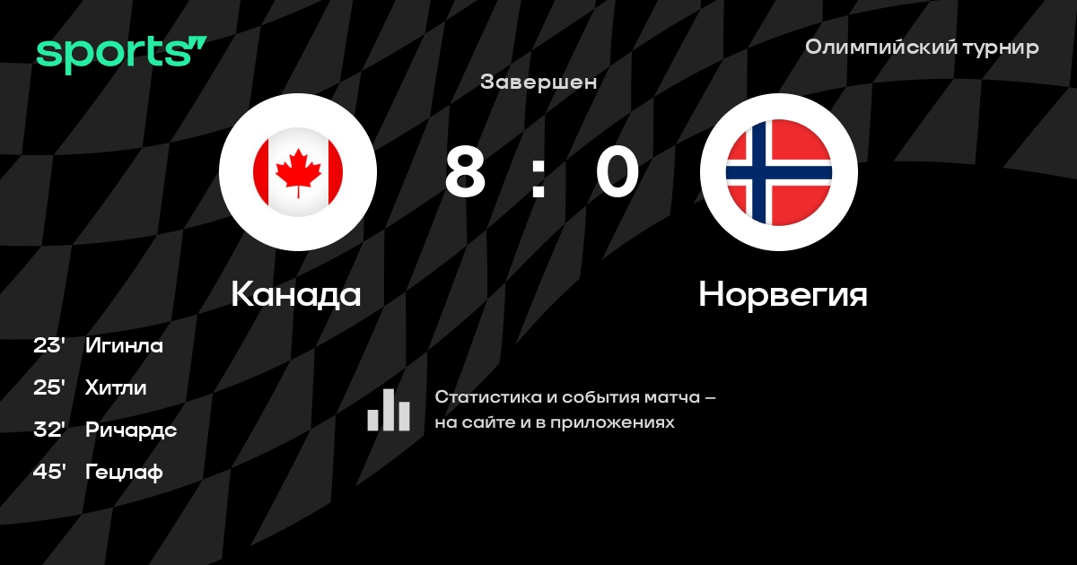 В прошедшем матче в рамках турнира Олимпийский турнир (Группа А. 1-й тур) состоялась встреча команд Канада - Норвегия