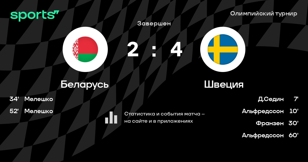 В прошедшем матче в рамках турнира Олимпийский турнир (Группа C. 2-й тур) состоялась встреча команд Беларусь - Швеция