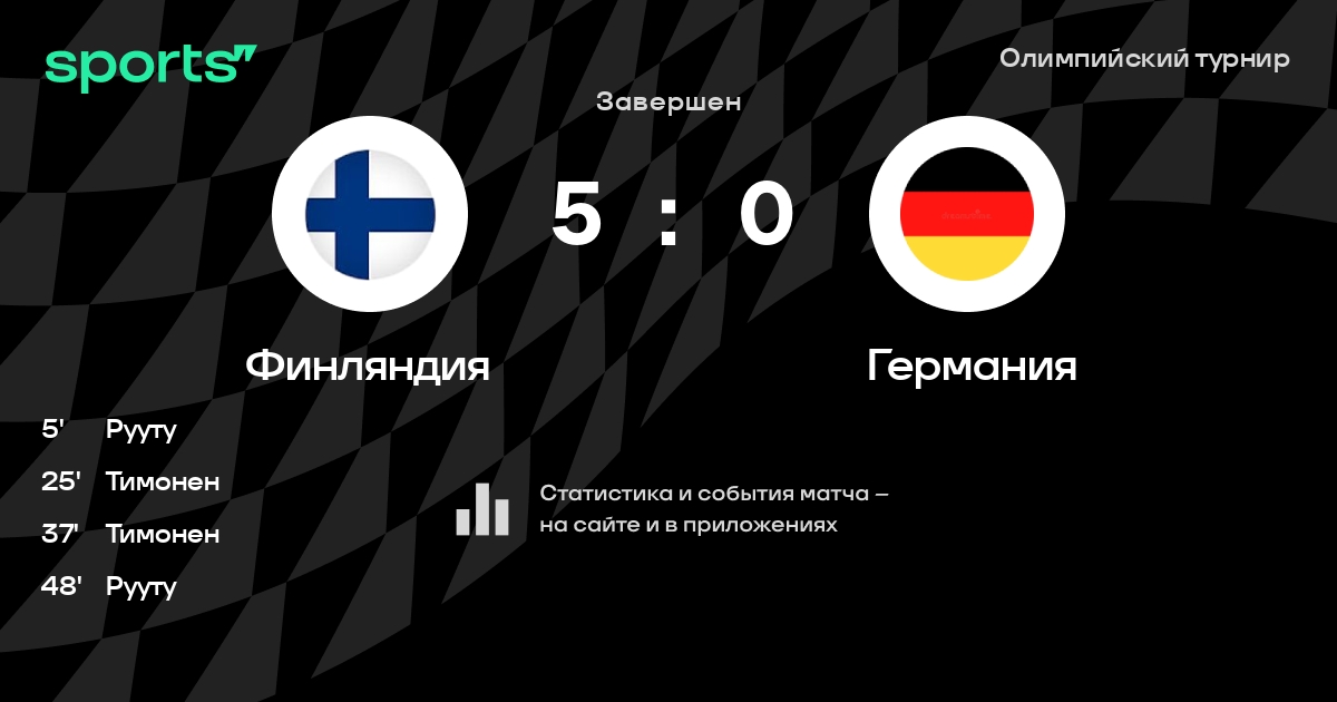 В прошедшем матче в рамках турнира Олимпийский турнир (Группа C. 2-й тур) состоялась встреча команд Финляндия - Германия