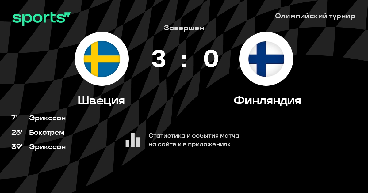 В прошедшем матче в рамках турнира Олимпийский турнир (Группа C. 3-й тур) состоялась встреча команд Швеция - Финляндия