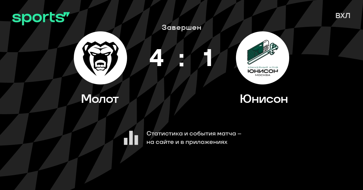 В прошедшем матче в рамках турнира ВХЛ состоялась встреча команд Молот - Юнисон в городе на стадионе Molot