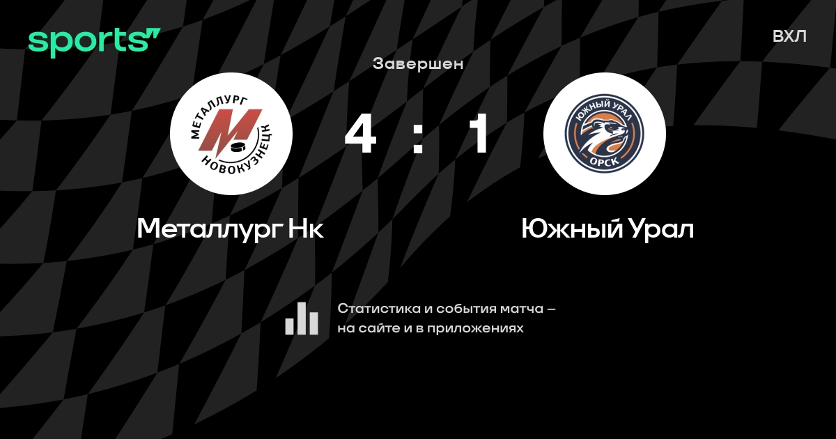 В прошедшем матче в рамках турнира ВХЛ состоялась встреча команд Металлург Нк - Южный Урал в городе на стадионе Dvorets sporta Kuznetsk Metallurg