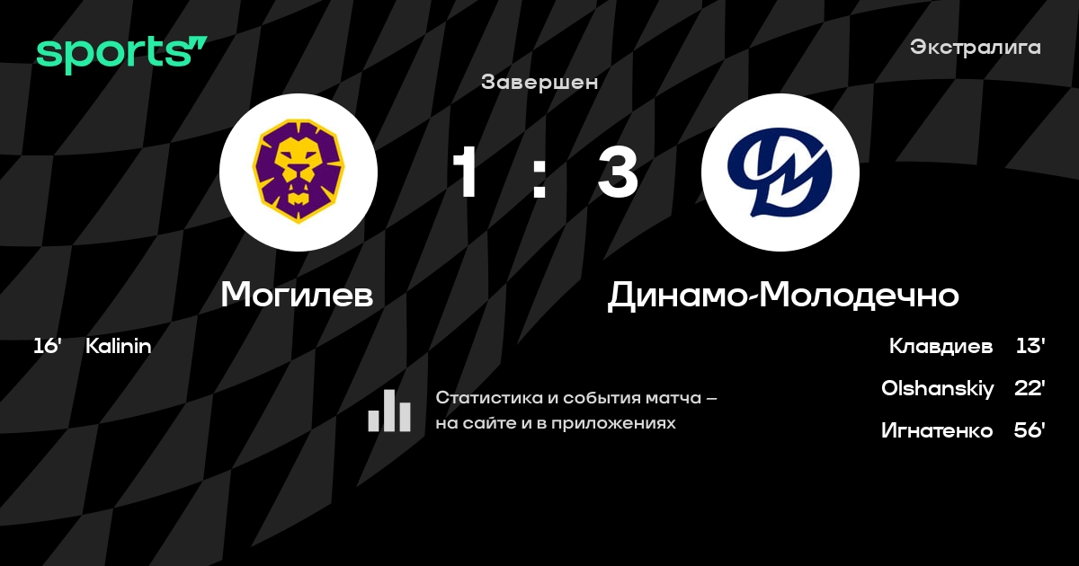 В прошедшем матче в рамках турнира Экстралига состоялась встреча команд Могилев - Динамо-Молодечно в городе Могилев (Беларусь) на стадионе Ледовый дворец спорта Могилев (вместимость - 3048)