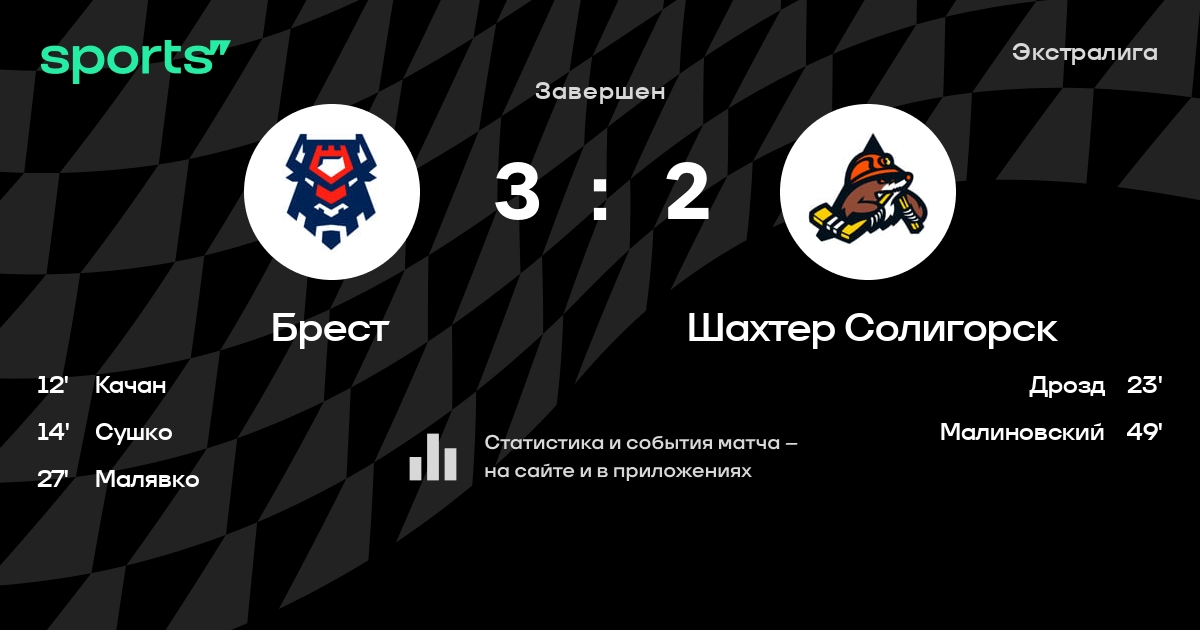 В прошедшем матче в рамках турнира Экстралига состоялась встреча команд Брест - Шахтер Солигорск в городе Брест (Беларусь) на стадионе Ледовый дворец Брест (вместимость - 2000)