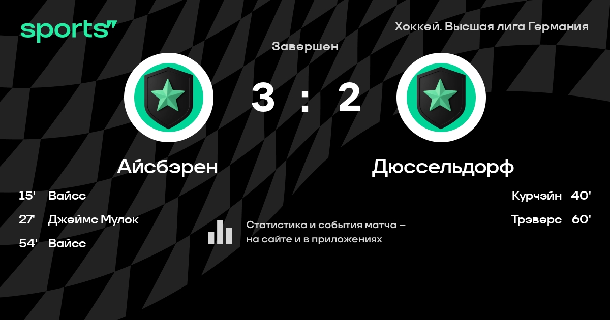 В прошедшем матче в рамках турнира Хоккей. Высшая лига Германия состоялась встреча команд Айсбэрен - Дюссельдорф