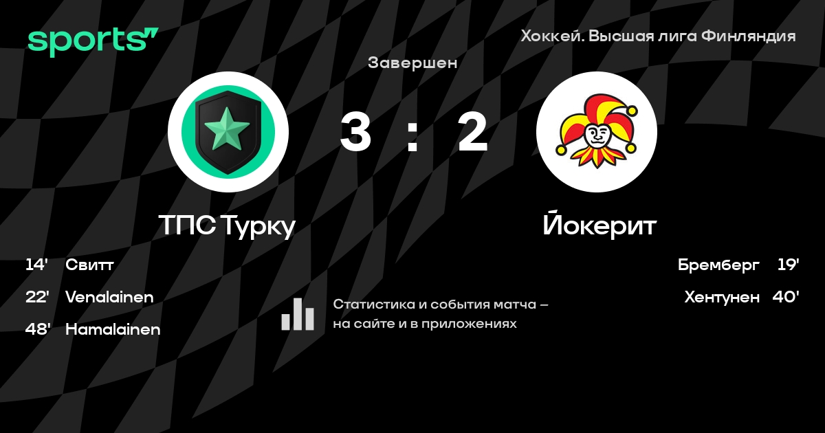 Как прошел матч, смотрите в текстовой трансляции ТПС Турку - Йокерит на Sports.ru