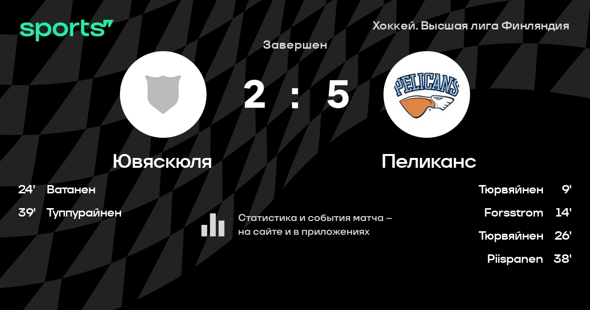 В прошедшем матче в рамках турнира Хоккей. Высшая лига Финляндия состоялась встреча команд Ювяскюля - Пеликанс