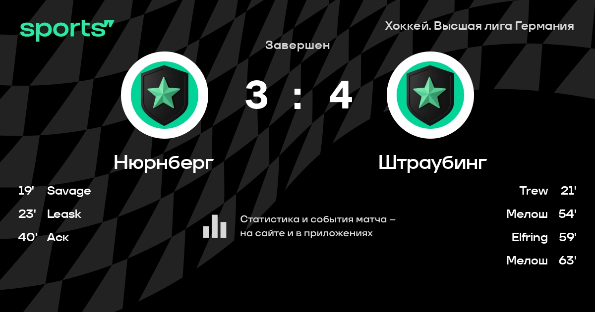В прошедшем матче в рамках турнира Хоккей. Высшая лига Германия состоялась встреча команд Нюрнберг - Штраубинг