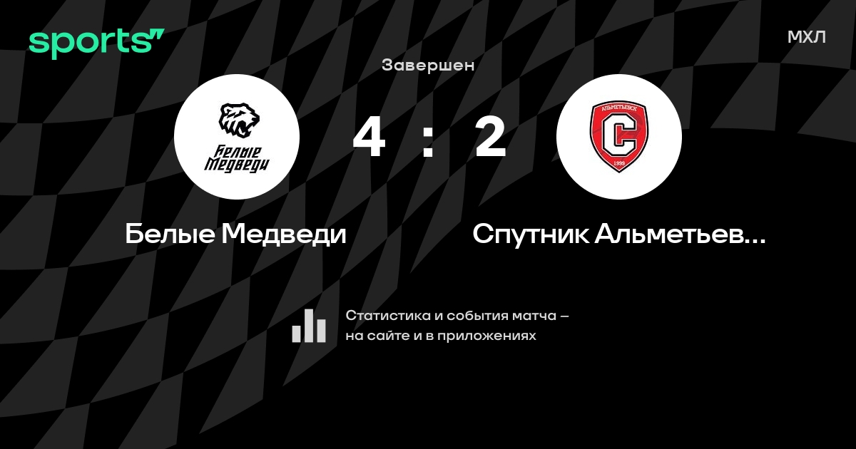 В прошедшем матче в рамках турнира МХЛ состоялась встреча команд Белые Медведи - Спутник Альметьевск в городе Челябинск (Россия) на стадионе Арена Трактор (вместимость - 7500)