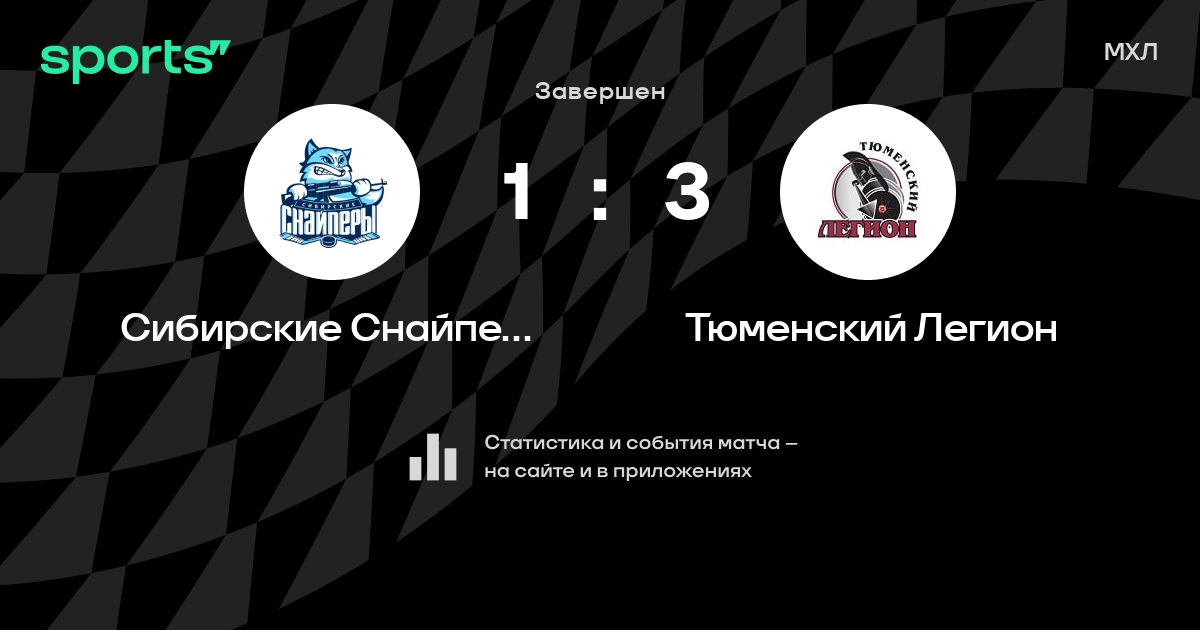В прошедшем матче в рамках турнира МХЛ состоялась встреча команд Сибирские Снайперы - Тюменский Легион в городе Новосибирск (Россия) на стадионе Арена-Сибирь (вместимость - 10587)