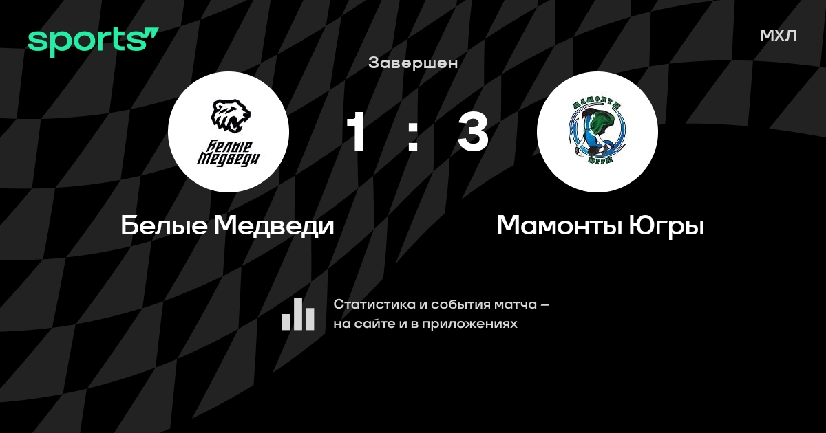 В прошедшем матче в рамках турнира МХЛ состоялась встреча команд Белые Медведи - Мамонты Югры в городе Челябинск (Россия) на стадионе Арена Трактор (вместимость - 7500)