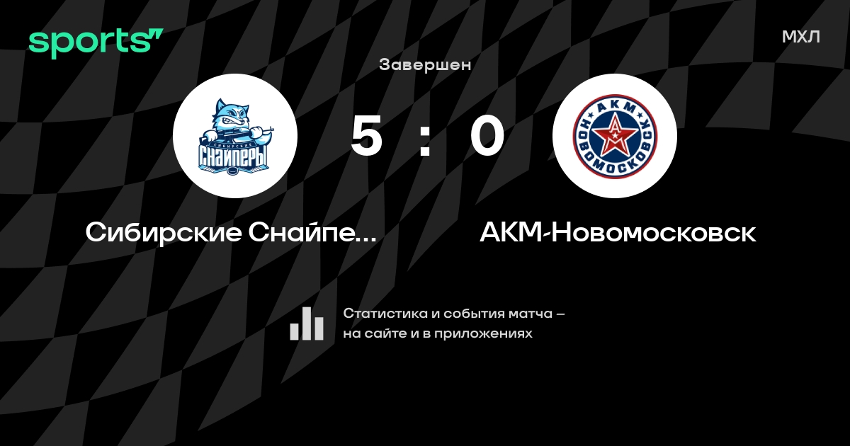 В прошедшем матче в рамках турнира МХЛ состоялась встреча команд Сибирские Снайперы - АКМ-Новомосковск в городе Новосибирск (Россия) на стадионе Арена-Сибирь (вместимость - 10587)