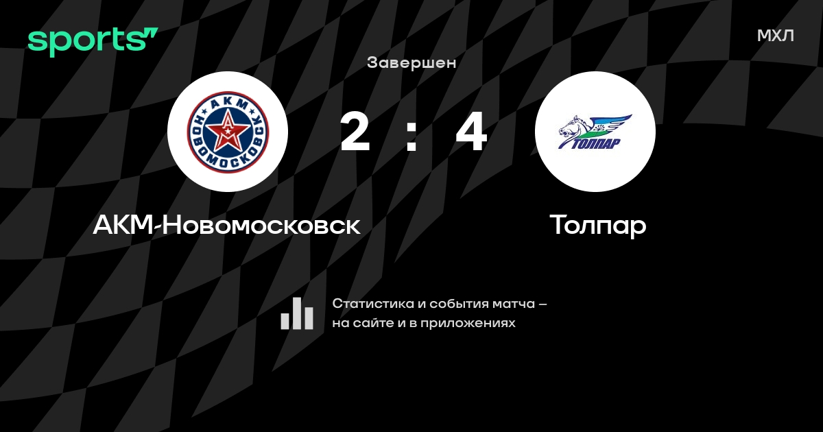 В прошедшем матче в рамках турнира МХЛ состоялась встреча команд АКМ-Новомосковск - Толпар в городе на стадионе Ledovyy Dvorets Yubileynyy