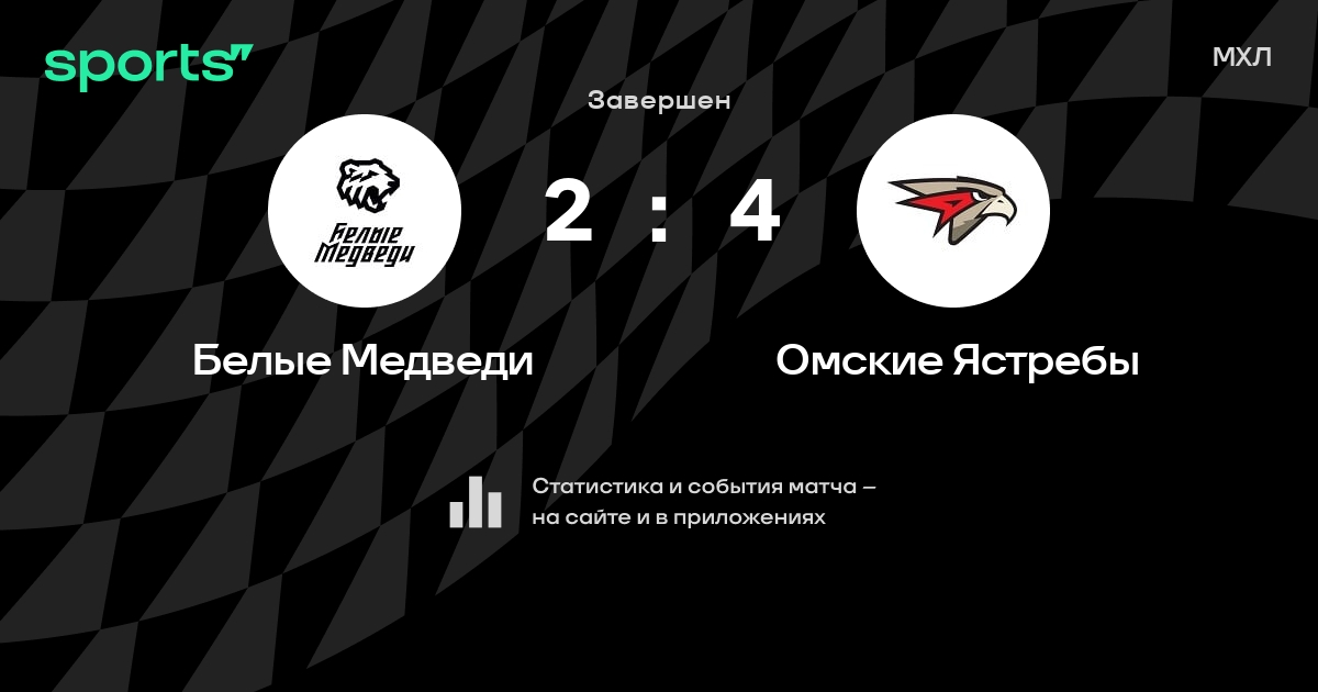 В прошедшем матче в рамках турнира МХЛ состоялась встреча команд Белые Медведи - Омские Ястребы в городе Челябинск (Россия) на стадионе Арена Трактор (вместимость - 7500)