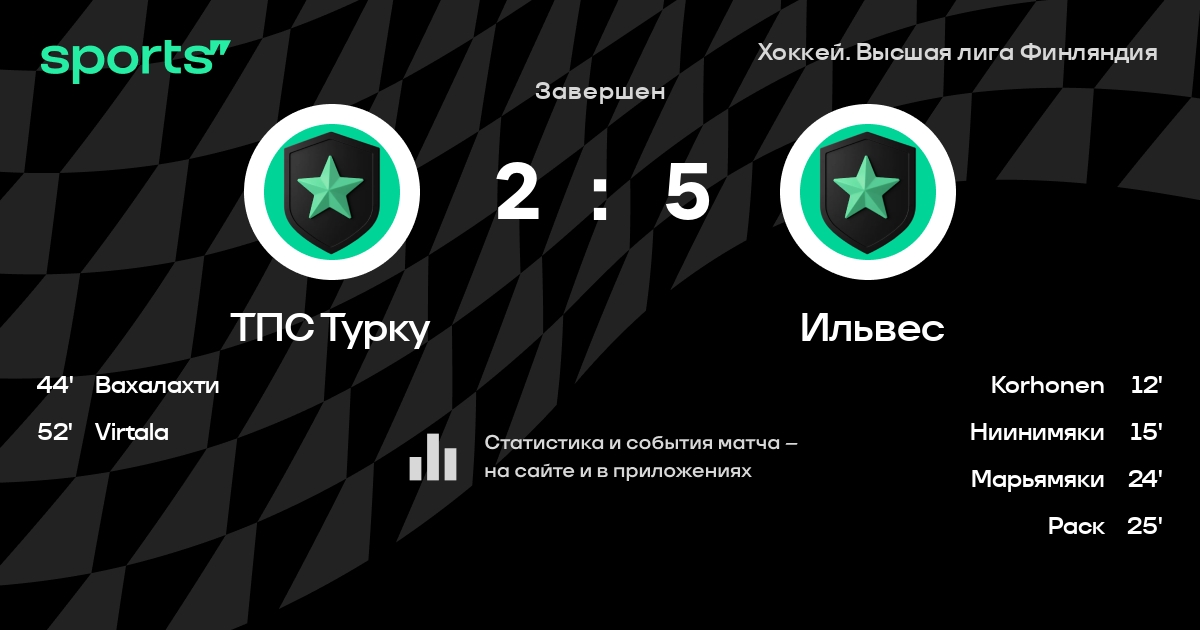 В прошедшем матче в рамках турнира Хоккей. Высшая лига Финляндия состоялась встреча команд ТПС Турку - Ильвес