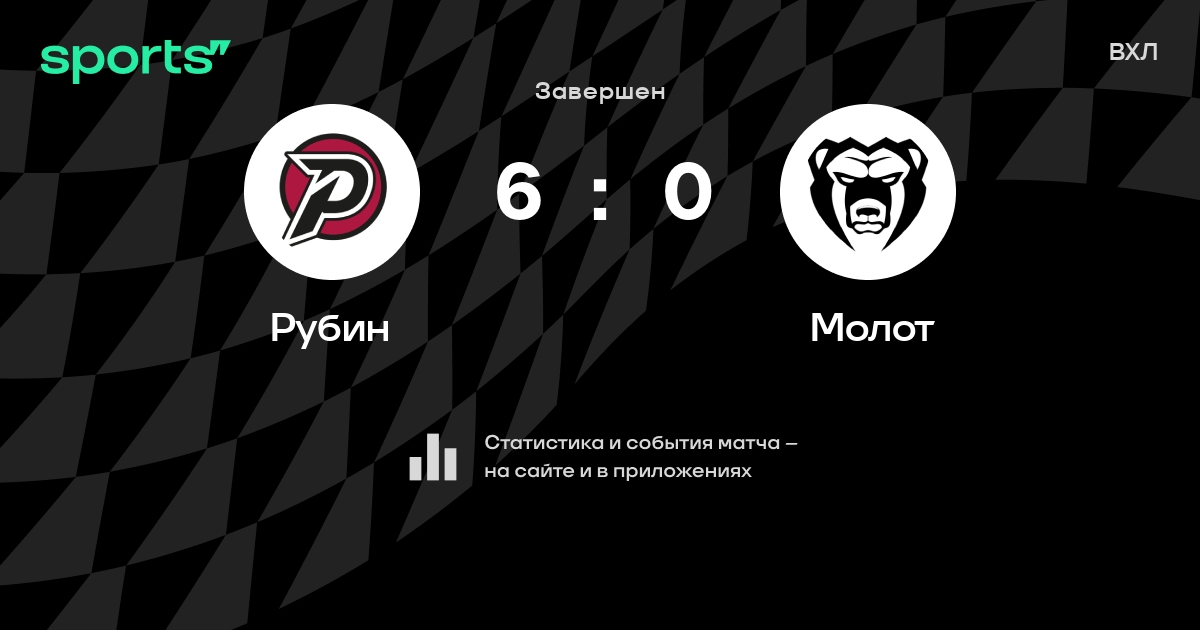 В прошедшем матче в рамках турнира ВХЛ состоялась встреча команд Рубин - Молот в городе Казань (Россия) на стадионе Дворец спорта (вместимость - 3523)