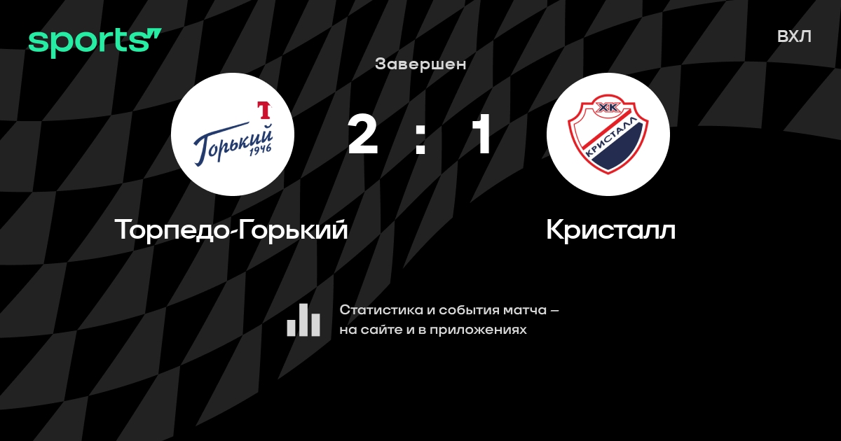В прошедшем матче в рамках турнира ВХЛ состоялась встреча команд Торпедо-Горький - Кристалл в городе Нижний Новгород (Россия) на стадионе Нагорный дворец спорта профсоюзов (вместимость - 5500)