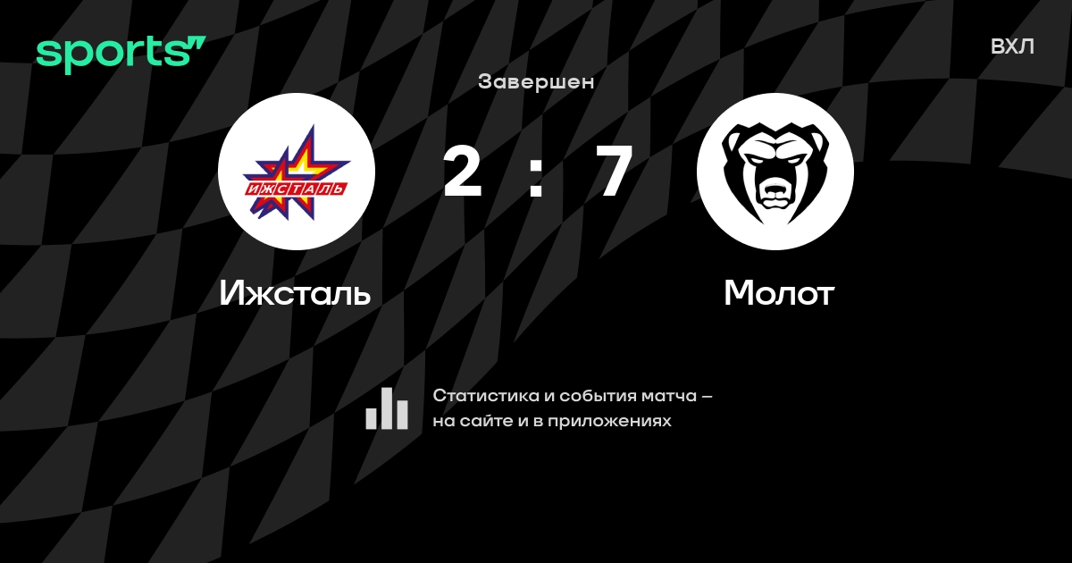 В прошедшем матче в рамках турнира ВХЛ состоялась встреча команд Ижсталь - Молот в городе на стадионе Ledovyy Dvorets Izhstal