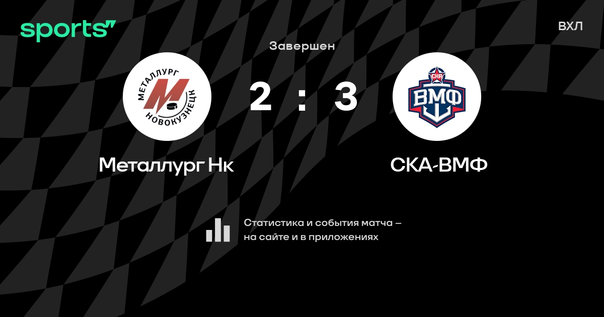 В прошедшем матче в рамках турнира ВХЛ состоялась встреча команд Металлург Нк - СКА-ВМФ в городе на стадионе Dvorets sporta Kuznetsk Metallurg