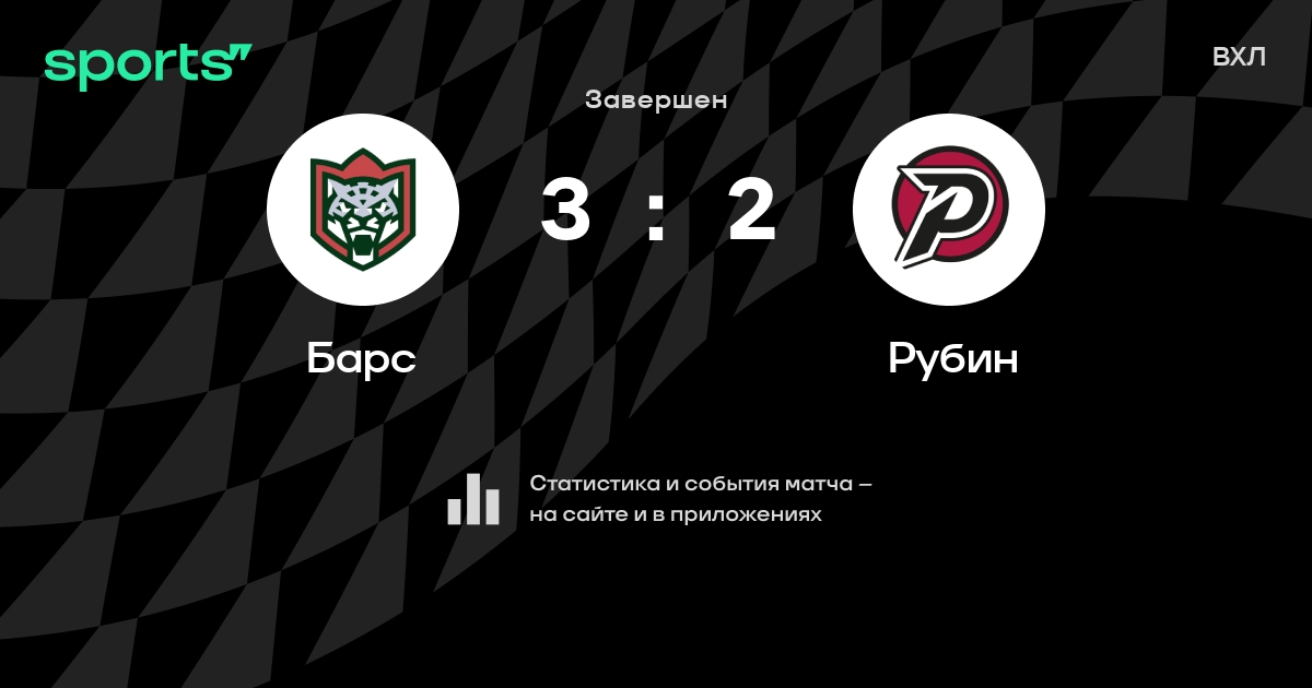 В прошедшем матче в рамках турнира ВХЛ состоялась встреча команд Барс - Рубин в городе Казань (Россия) на стадионе Дворец спорта (вместимость - 3523)