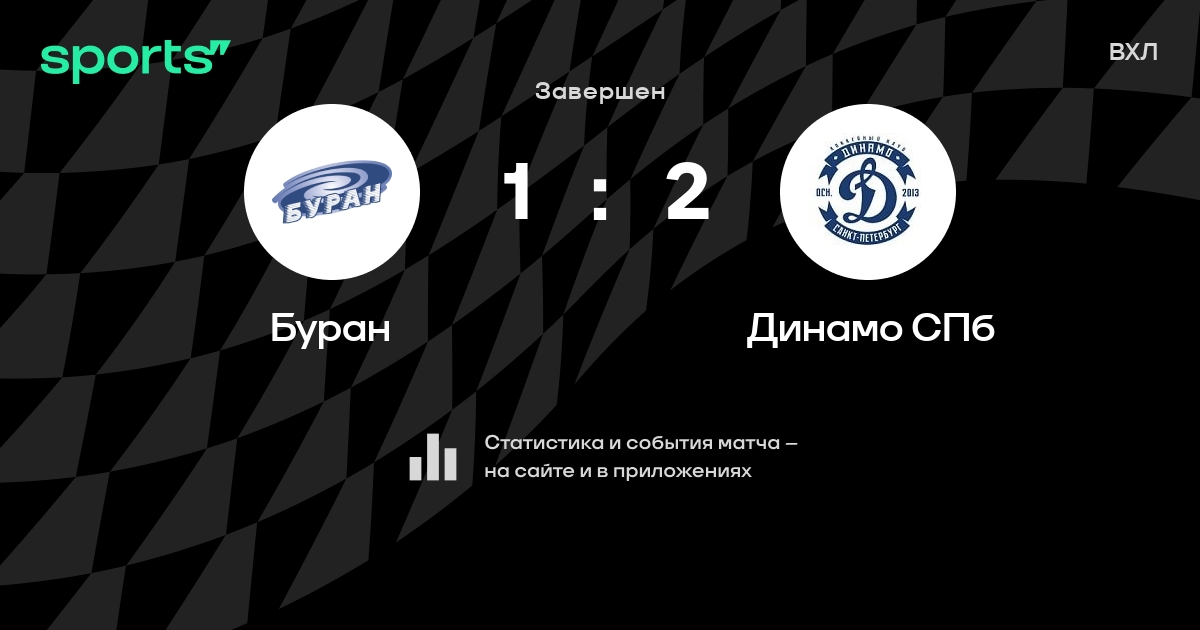 В прошедшем матче в рамках турнира ВХЛ состоялась встреча команд Буран - Динамо СПб в городе на стадионе Mau Sk Yubileynyy
