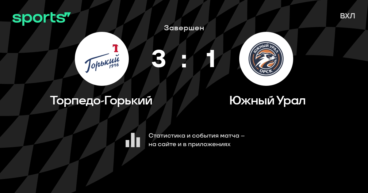 В прошедшем матче в рамках турнира ВХЛ состоялась встреча команд Торпедо-Горький - Южный Урал в городе Нижний Новгород (Россия) на стадионе Нагорный дворец спорта профсоюзов (вместимость - 5500)