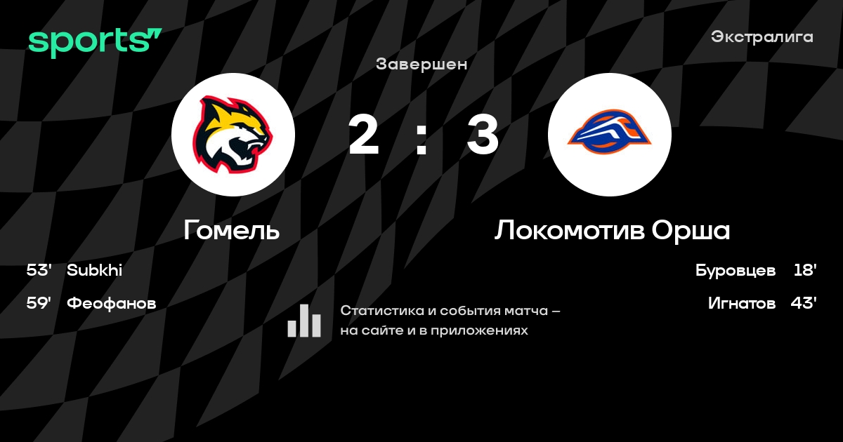 В прошедшем матче в рамках турнира Экстралига состоялась встреча команд Гомель - Локомотив Орша в городе Гомель (Беларусь) на стадионе Ледовый дворец Гомель (вместимость - 2700)