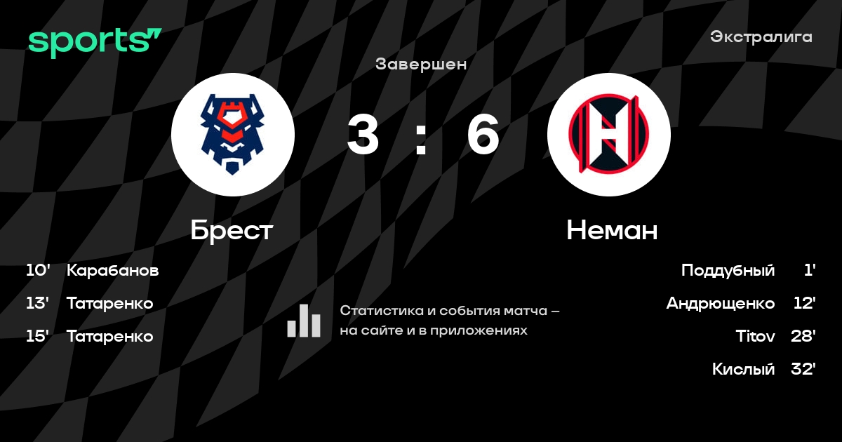В прошедшем матче в рамках турнира Экстралига состоялась встреча команд Брест - Неман в городе Брест (Беларусь) на стадионе Ледовый дворец Брест (вместимость - 2000)