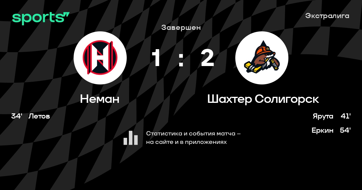 В прошедшем матче в рамках турнира Экстралига состоялась встреча команд Неман - Шахтер Солигорск в городе Солигорск (Беларусь) на стадионе Ледовый дворец спорта Солигорск (вместимость - 1800)