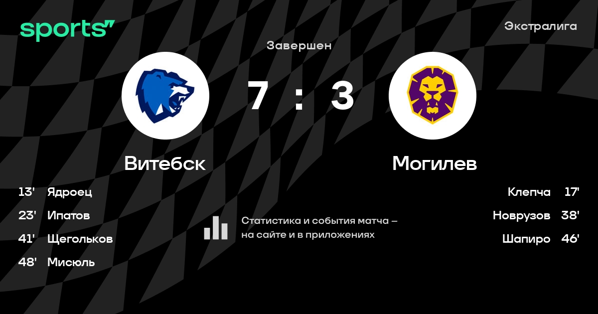 В прошедшем матче в рамках турнира Экстралига состоялась встреча команд Витебск - Могилев в городе Витебск (Беларусь) на стадионе Витебский дворец спорта (вместимость - 2000)