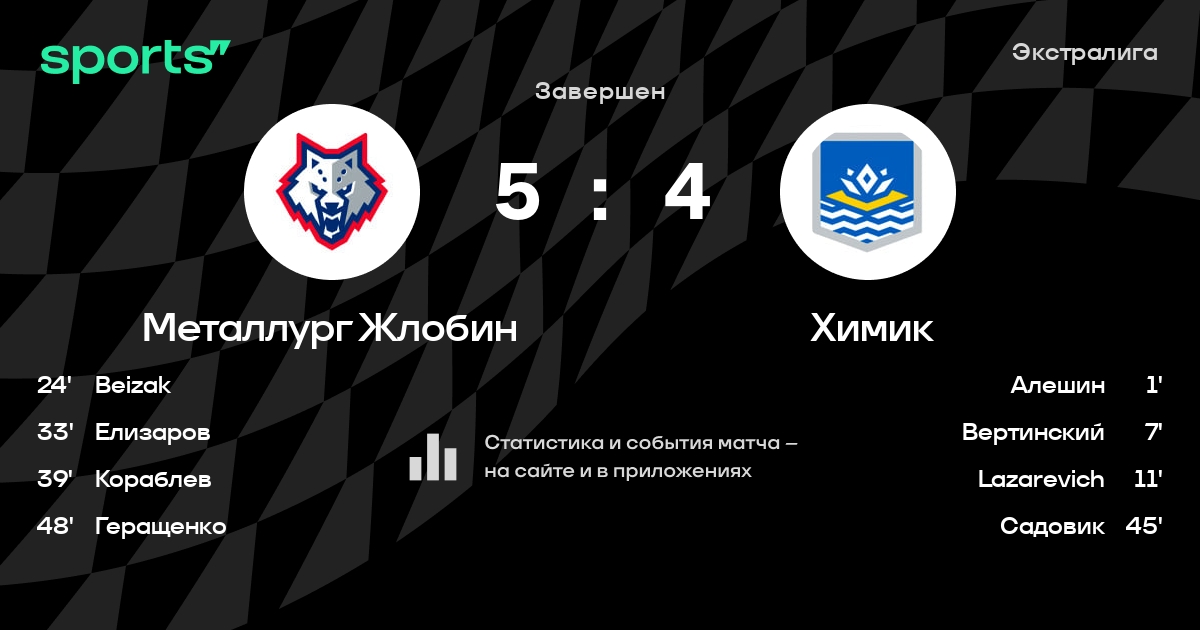 В прошедшем матче в рамках турнира Экстралига состоялась встреча команд Металлург Жлобин - Химик в городе Жлобин (Беларусь) на стадионе Ледовый дворец Металлург (вместимость - 2018)