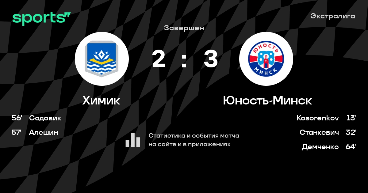 В прошедшем матче в рамках турнира Экстралига состоялась встреча команд Химик - Юность-Минск в городе Новополоцк (Беларусь) на стадионе Дворец культуры и спорта (вместимость - 1200)