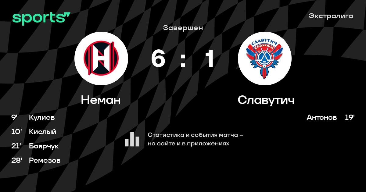 В прошедшем матче в рамках турнира Экстралига состоялась встреча команд Неман - Славутич в городе Солигорск (Беларусь) на стадионе Ледовый дворец спорта Солигорск (вместимость - 1800)