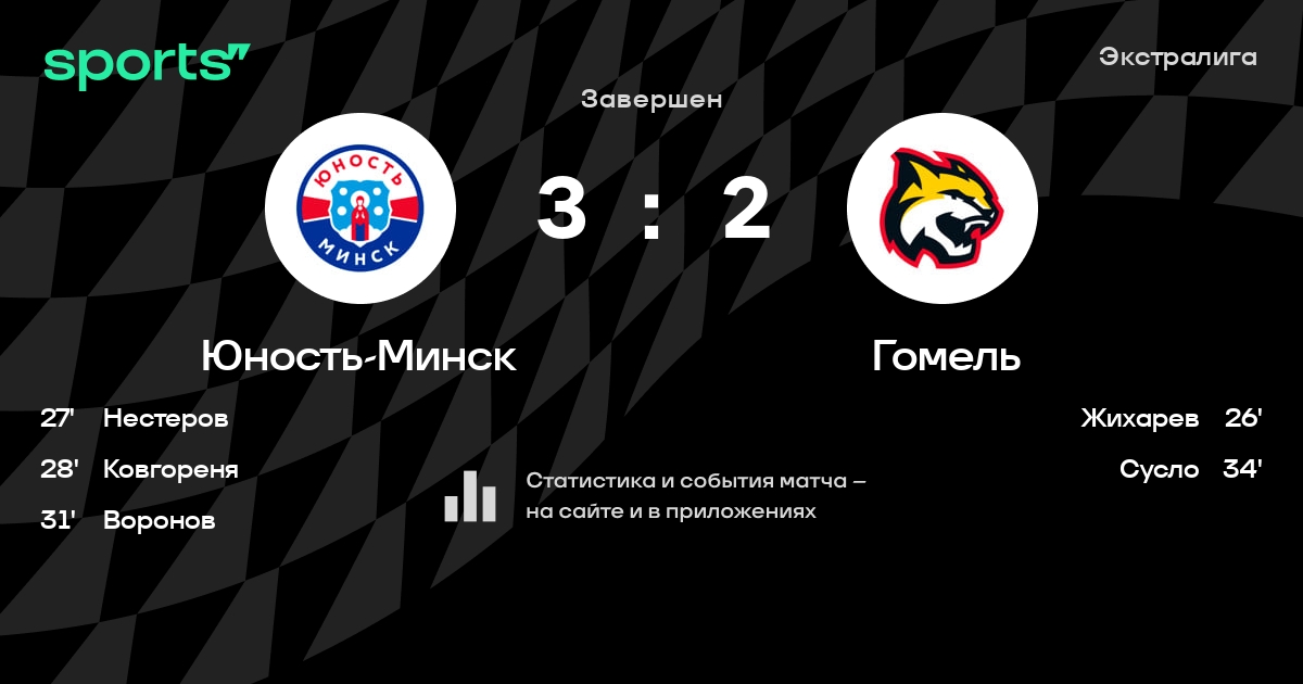 В прошедшем матче в рамках турнира Экстралига состоялась встреча команд Юность-Минск - Гомель в городе Минск (Беларусь) на стадионе Чижовка-Арена (вместимость - 9487)