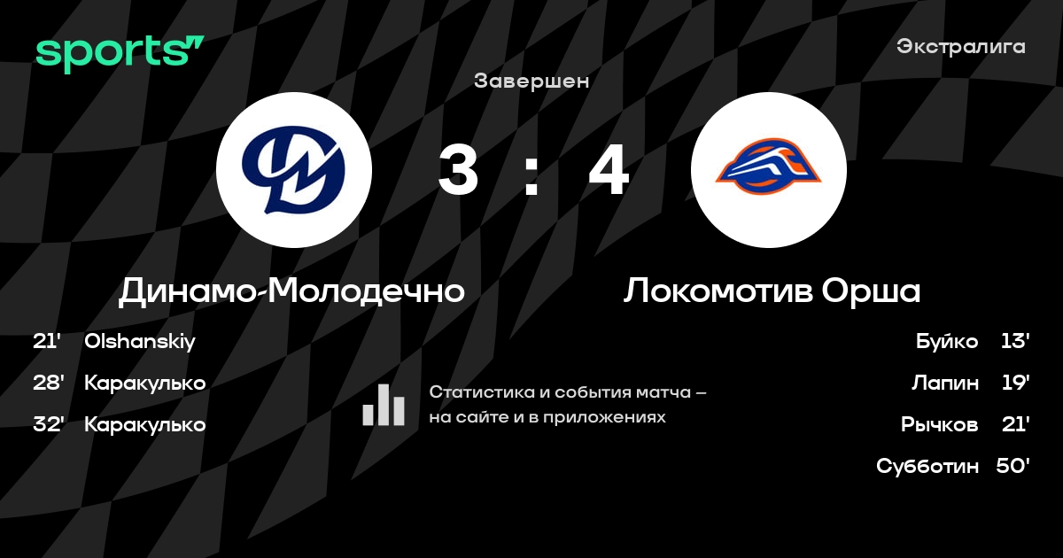 В прошедшем матче в рамках турнира Экстралига состоялась встреча команд Динамо-Молодечно - Локомотив Орша в городе Молодечно (Беларусь) на стадионе Ледовый дворец Молодечно (вместимость - 2000)